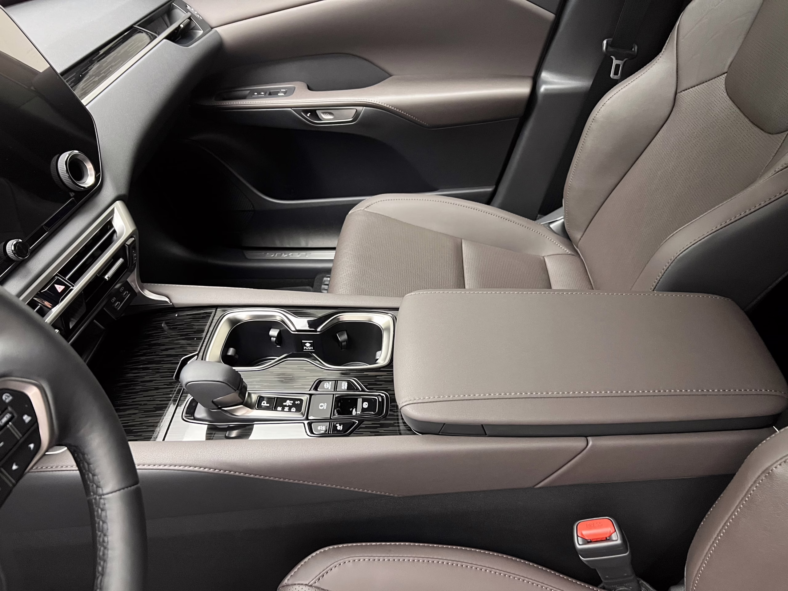 Салон: Світло-коричнева комбінована шкіра зі вставками салону “Чорна голограма” та чорною стелею (LB43)