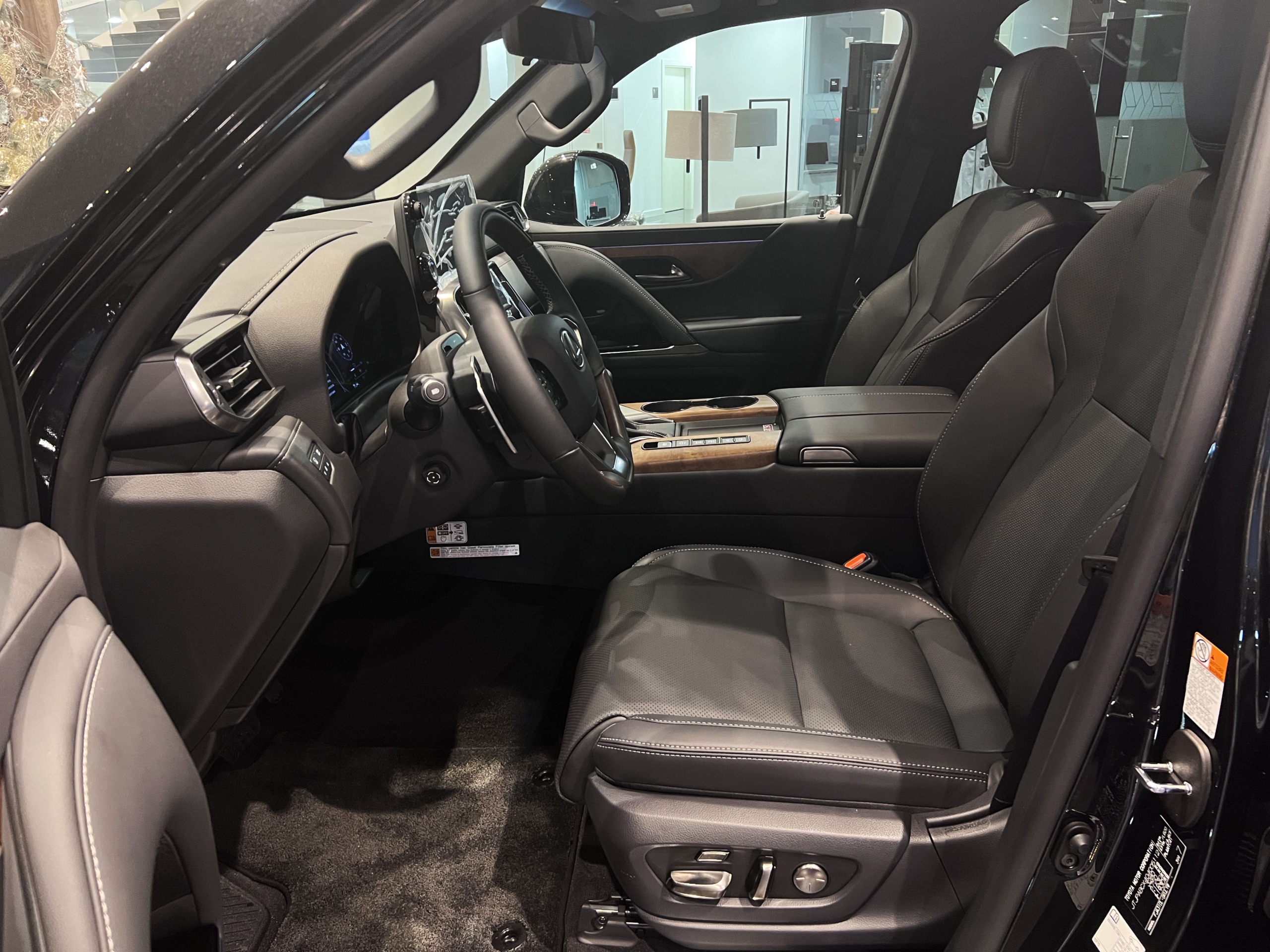 Чорна комбінована семіанілінова шкіра зі вставками салону "Матовий горіх" та чорною стелею (LB20)