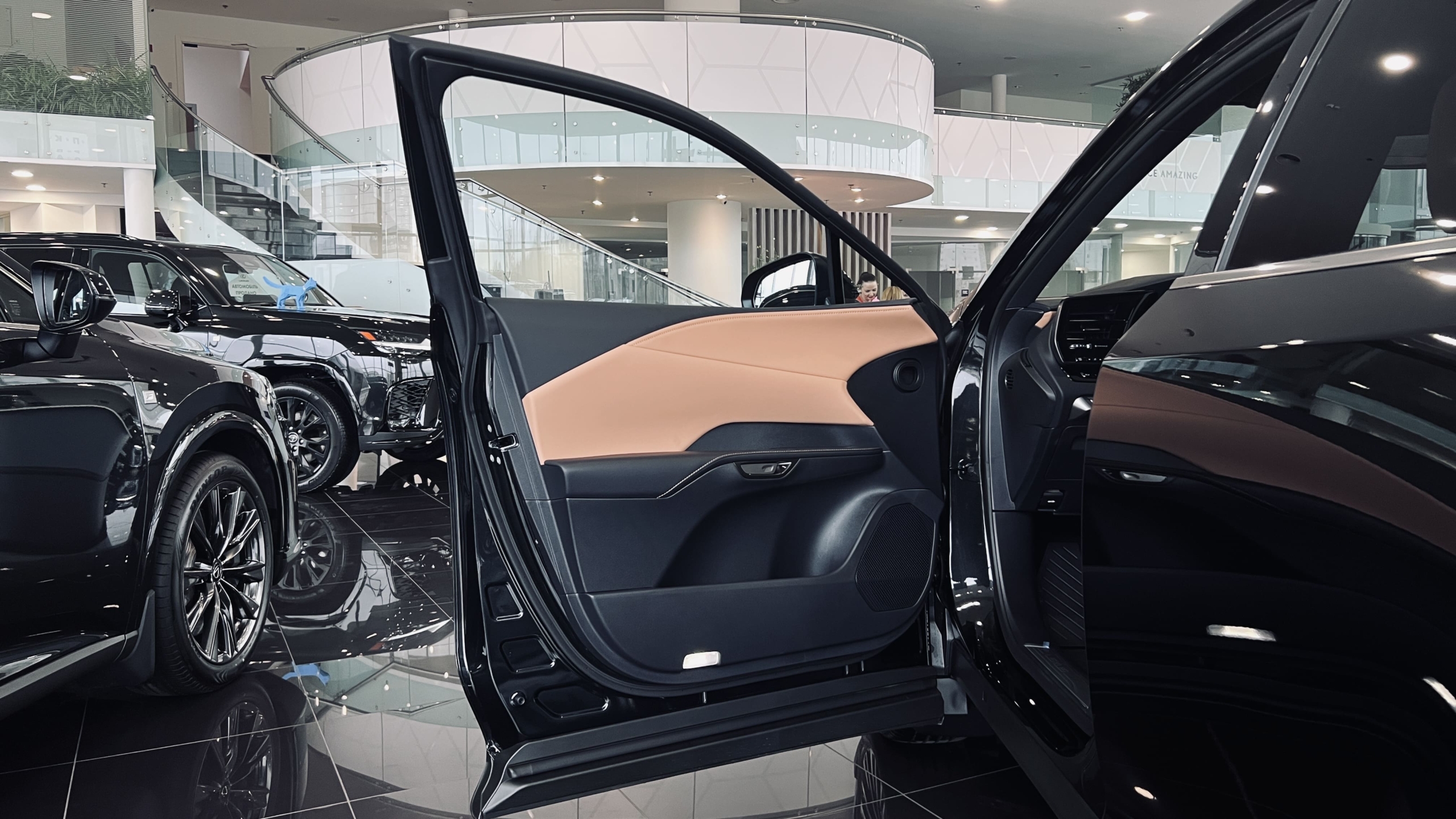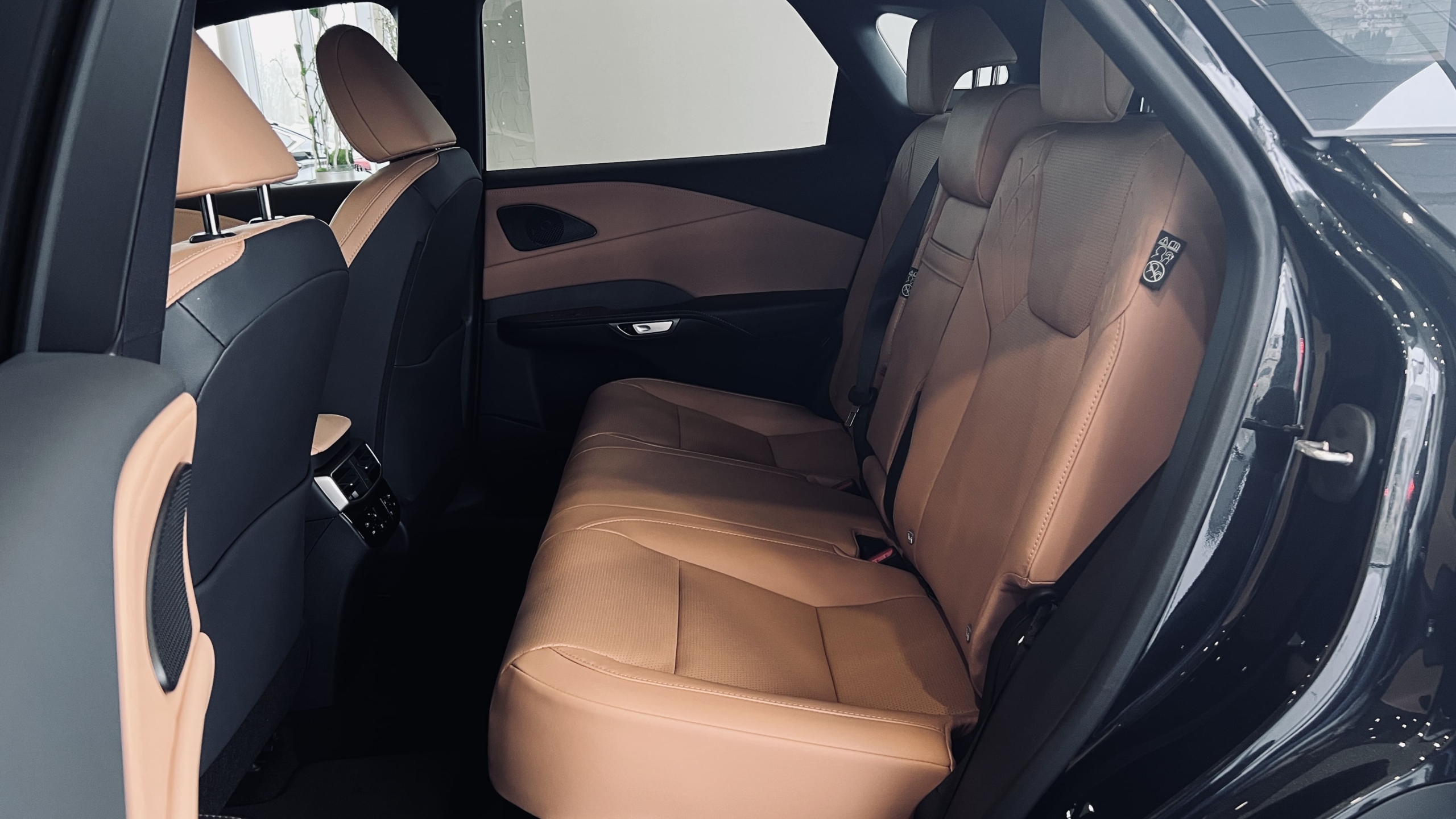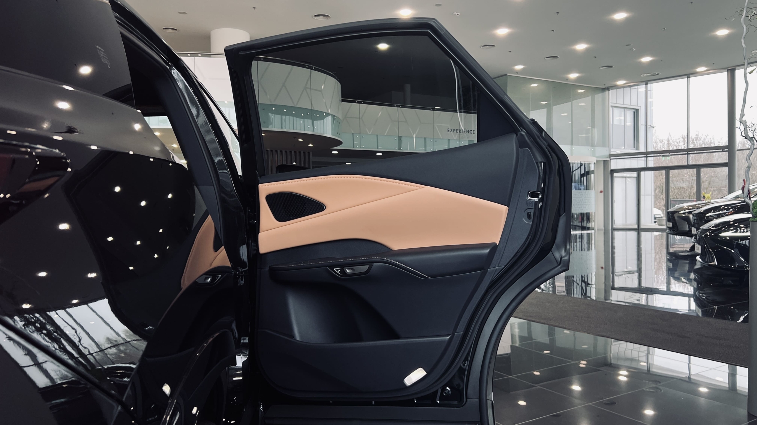 Світло-коричнева комбінована шкіра зі вставками салону "Чорна голограма" та чорною стелею (LB43)